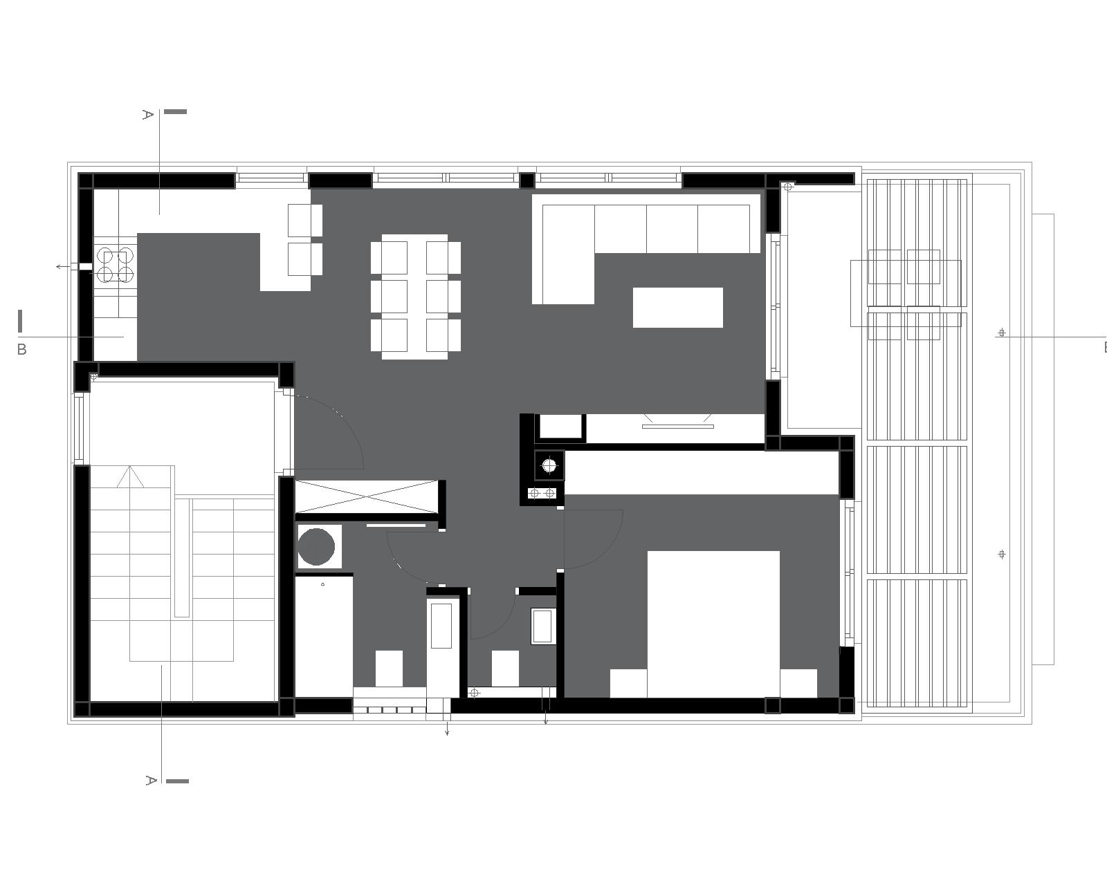 Parcela je vrlo mala, nešto više od 250 kvadrata, dok je građevinska brutto površina 290 metara kvadratnih. Prostorni plan je dopustio da se približimo međi 1 metar, s tim da na toj fasadi imamo samo staklenu opeku i tu su smještene pomoćne prostorije i kupaonice. S obzirom na veličinu parcele, trebalo je posebno racionalno organizirati prostora da bi se ispunio projektni zadatak.