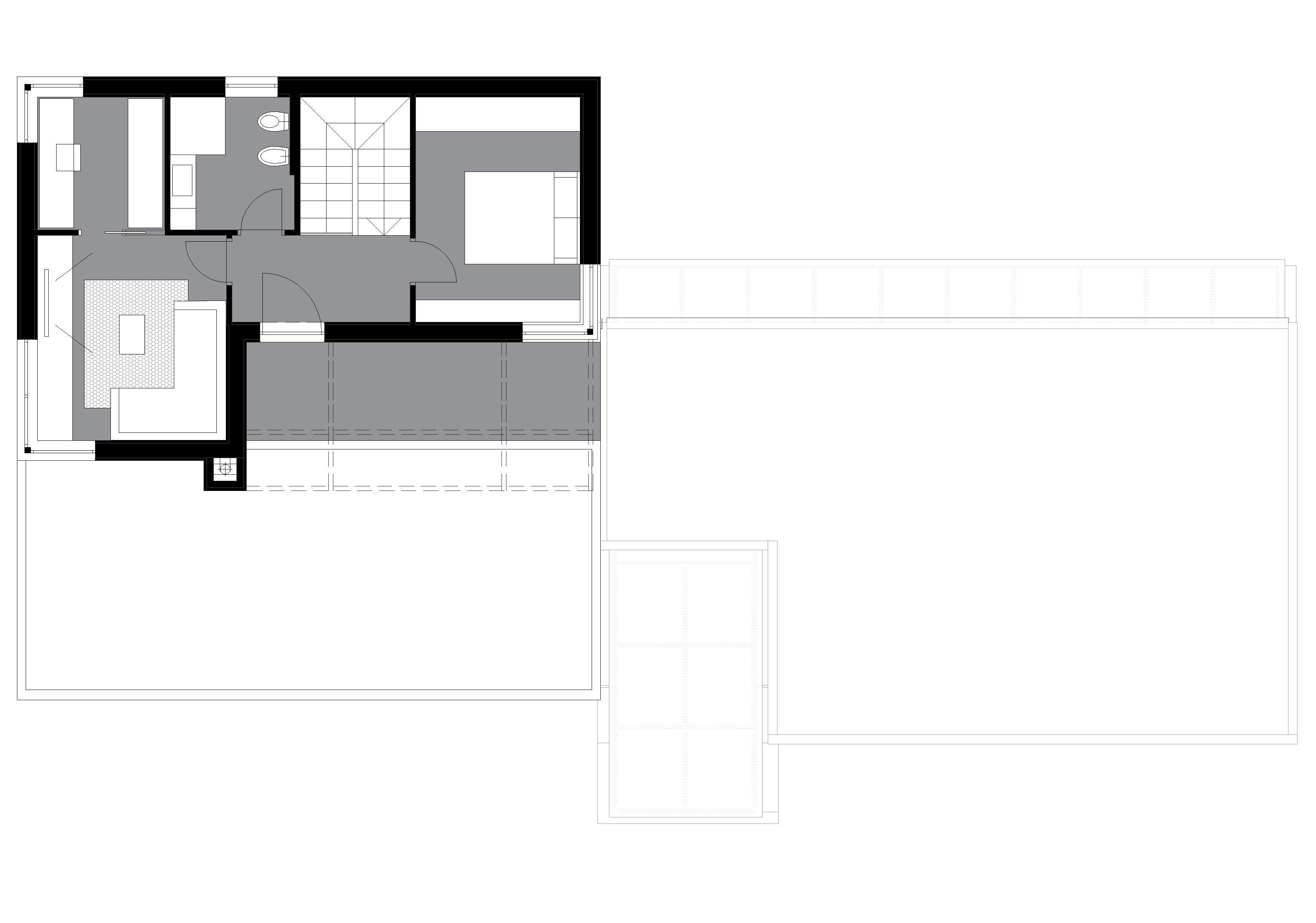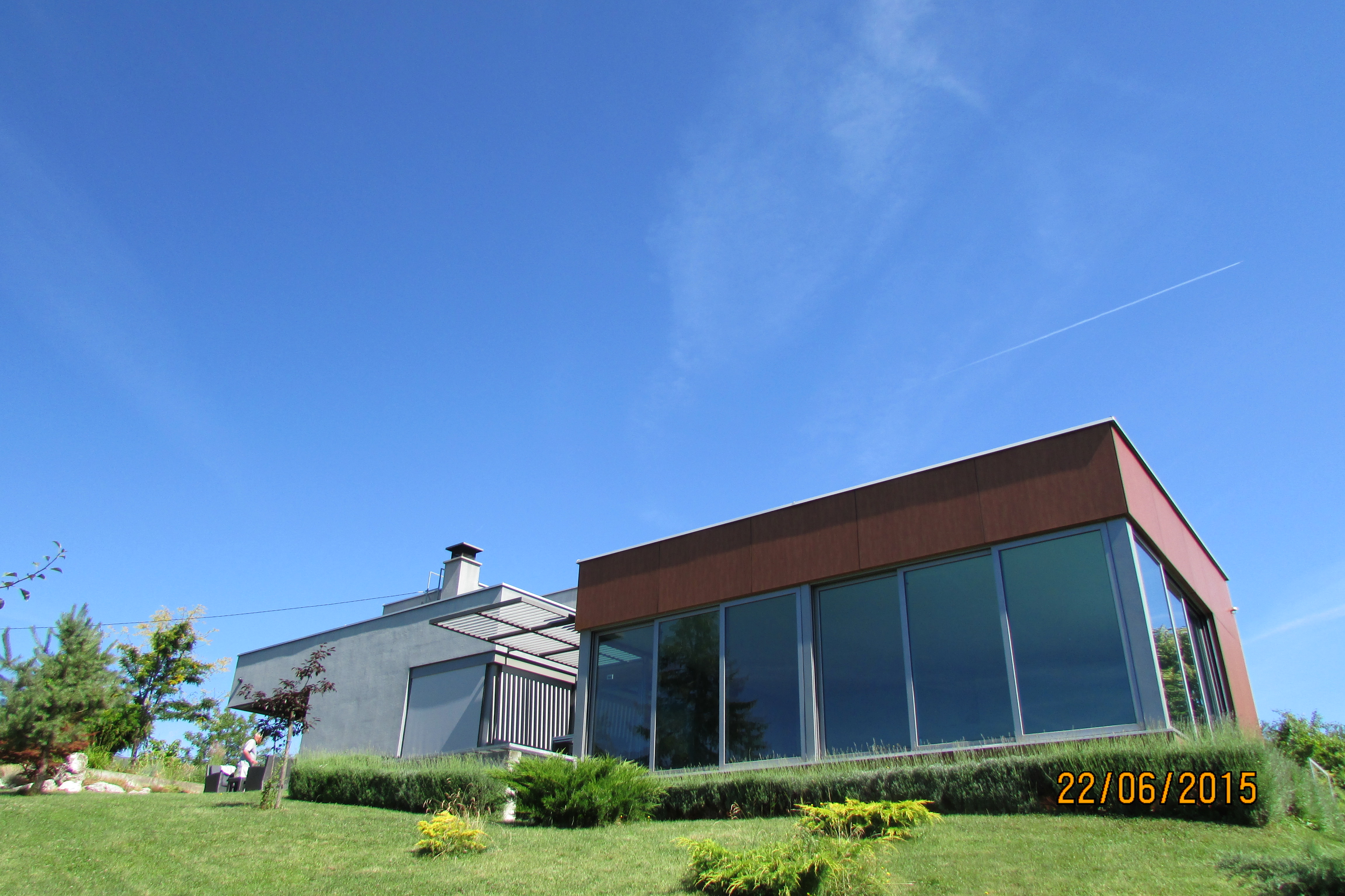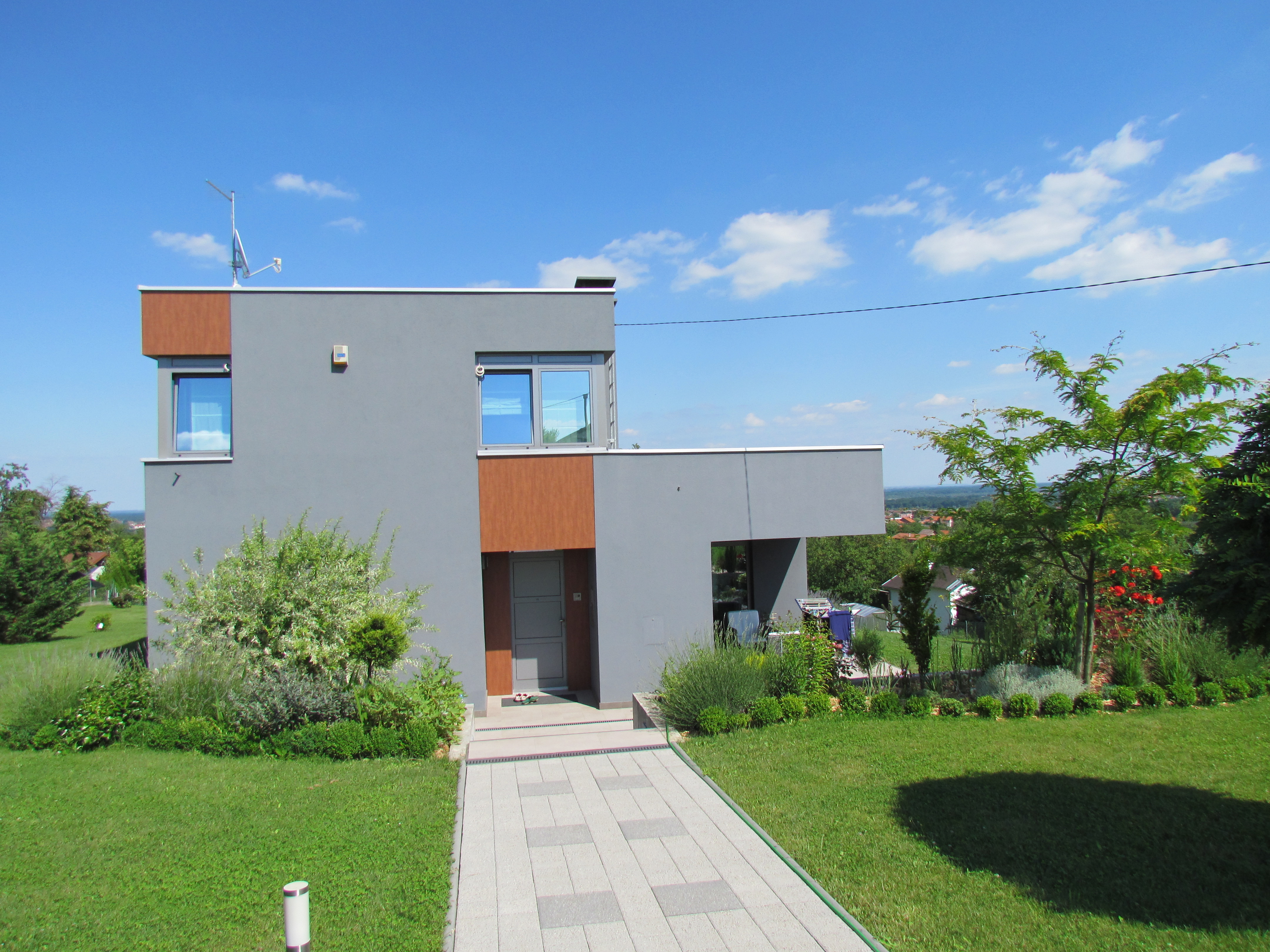 Radi se o obiteljskoj kući u okolici Zagreba u kojoj živi dvoje ljudi. Isprojektirati kuću za dvoje koja će dati sav komfor i pri ugošćavanju obitelji a opet ne biti prevelika za svakodnevni život svakako je izazov. Pomiriti želje i realnost je možda najteži zadatak, čak i kad financijski aspekt nije problem. Stambeni dio kuće ima oko 160m2, a bazen 75m2.