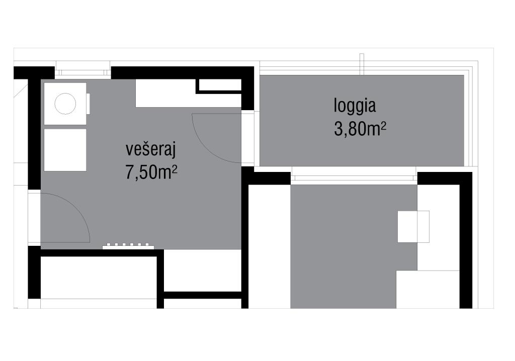 Kod manjih stanova i kuća, vešeraj ne mora biti zasebna prostorija, već ga u tom slučaju najčešće projektiram kao zatvorenu nišu unutar predsoblja ili kao dio walk in ormara. Ako su perilica i sušilica jedna pored druge, odlaganje je iznad na policama. Češće se moji klijenti odlučuju na vertikalno postavljanje gdje su perilica i sušilica jedna iznad druge, tako da im sastrane ostaje prostor za koš za prljavo rublje, metle itd.